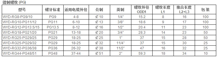 rg型产品的特别设计可以防止电缆松动,但也可以连结到金属软管。它只需在并未工具的状况下即插即拔,大大减小了安装时间。夹紧电缆范围大抗拉力特强,该产品具抗酸,碱,化学物质和一般溶剂等抗腐蚀性能,可以防止在各个领域的普遍使用。防水,防尘。产品尺码普遍