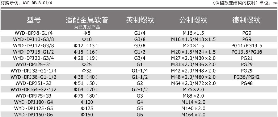 螺纹标准:英国制g,公制Mefyic,德国制pg。