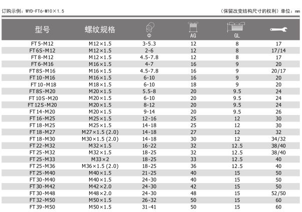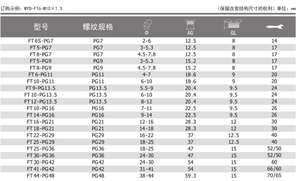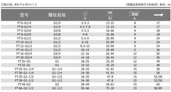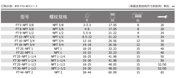 螺纹规格:公制(Metric),德制牙(PG),英制牙[g(pf)]和美制牙(NPT)