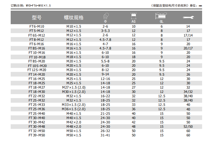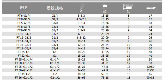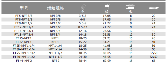 螺纹标准:公制(Metric),德制牙(PG),英制牙[g(pf)]和美制牙(NPT)